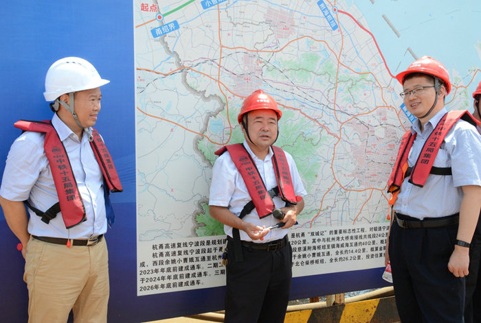 寧波市高等級公路建設(shè)管理中心副主任徐愛敏、寧波市交通局建管處處長葉昌勇、浙江省交投交通建設(shè)管理有限公司副總經(jīng)理?xiàng)畛砂?、監(jiān)理公司總監(jiān)章華鋒等陪同。