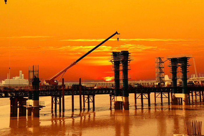 杭甬項目濱?;ネㄕ加煤S蛎娣e613.03畝,是連接甬舟高速公路的海上互通立交橋,由主線橋、4座拼寬橋和8條匝道橋組成,全長10090米,是目前亞洲最大的海上互通樞紐,浙江省、寧波市的重點建設(shè)項目,是一期5個標段中的“瓶頸”工程,下跨輸油管道、新奧燃氣、500千伏海纜等多條海底管線,3次上跨、4次下穿金塘大橋。濱海互通設(shè)計鉆孔樁1027根,平均樁長83米。去年初全面開工建設(shè)以來,該項目部采取棧橋先行的辦法,為鋼護筒運輸、海上加工鋼筋籠、鉆孔泥漿反循環(huán)、堆放鋼筋籠、分節(jié)插打直徑1.8米到2.5米的鋼護筒等樁基施工搭建了平整、穩(wěn)固的平臺。去年下半年根據(jù)施工需要,架設(shè)鋼棧橋與插打鋼護筒、鉆孔、下鋼筋籠、灌注混凝土等多道工序同時展開,形成遍地開花、多點擊破的“聯(lián)合作戰(zhàn)”陣勢,穩(wěn)步向前推進。
