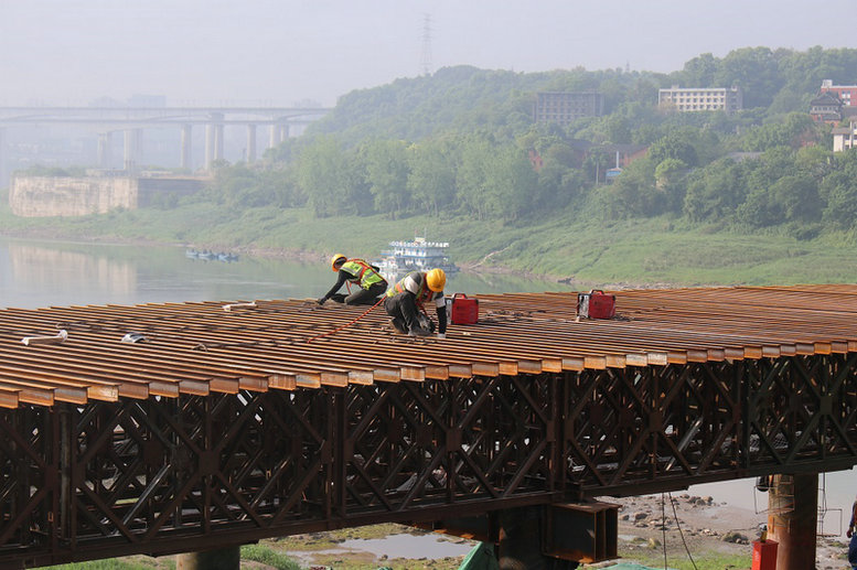 為了有序推進(jìn)施工進(jìn)度,項(xiàng)目部精心組織,科學(xué)安排,合理配置資源。優(yōu)化施組方案,改進(jìn)工法、工藝,實(shí)行24小時(shí)項(xiàng)目領(lǐng)導(dǎo)輪流帶班制,技術(shù)、安質(zhì)人員跟班作業(yè)監(jiān)督指導(dǎo)、盯控,施工作業(yè)人員盡心盡責(zé),嚴(yán)格規(guī)范,精心施工,以安全促生產(chǎn),以質(zhì)量保安全。在重慶進(jìn)入高溫天氣以來(lái),項(xiàng)目部積極做好防暑工作,通過(guò)搭設(shè)遮陽(yáng)棚、放置冰塊,抓兩頭、歇中間,避開(kāi)高溫時(shí)段施工等措施,確保了在高溫期施工不停歇,產(chǎn)值完成不減少,施工計(jì)劃如期實(shí)現(xiàn)。目前廖家溪軌道專(zhuān)用橋P1、P2墩均已施工至28.5米,且東西兩岸鋼棧橋基本搭設(shè)完成,為上部結(jié)構(gòu)下弦梁鋼斜撐(鋼箱梁)及上弦梁施工創(chuàng)造了條件。