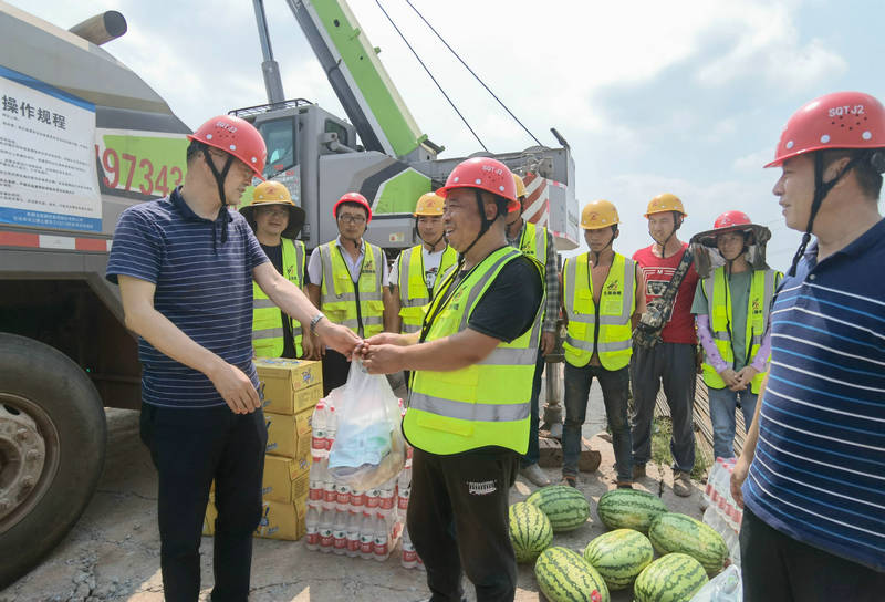 重慶訊(通訊員 單飛龍)炎炎酷暑送清涼、舉手投足顯關懷。8月5日上午,重慶雙錢高速土建二標項目經(jīng)理李東寶代表項目部,深入施工項目現(xiàn)場及班組生活駐地,開展“夏送清涼”慰問一線活動,并為他們送去了冰糖、菊花、礦泉水、冰紅茶、西瓜及藿香正氣液等防暑降溫物品,用清涼和關懷傳遞為項目建設者們服務的真情,用行動向新時代“工匠人”精神致敬。