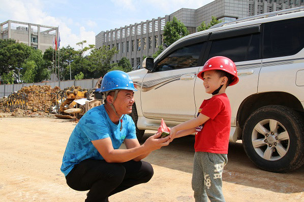 炎炎夏日似火燒,滾滾熱浪暑襲人。在探親“小候鳥”及職工家屬的強(qiáng)烈要求下,福宜項(xiàng)目部工委會(huì)于8月5日組織“小候鳥”深入施工現(xiàn)場(chǎng)問候父輩和農(nóng)民工,為施工一線的建設(shè)者們送去了西瓜、綠豆湯、藿香正氣水等夏日“清涼”。一張張真摯的面孔,一雙雙稚嫩的小手、一句句真誠的問候,大大的提升了職工群眾工作的幸福感,進(jìn)一步激發(fā)了建設(shè)者們的施工熱情,為融入助推項(xiàng)目施工生產(chǎn)起到了很好的促進(jìn)作用。