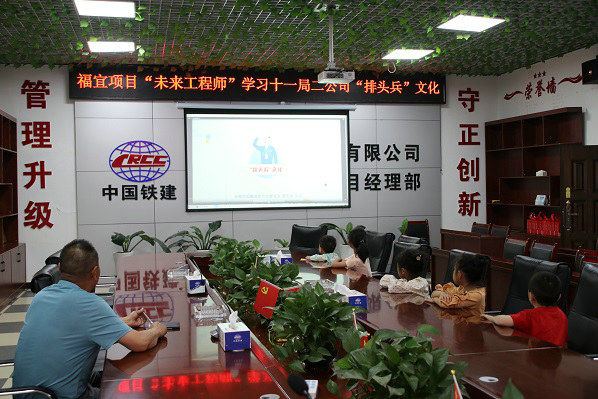 項(xiàng)目黨工委書記徐榮勰同志親自為“未來工程師”講解了“排頭兵”文化,詳細(xì)介紹了“排頭兵”文化的內(nèi)涵及釋義,帶領(lǐng)“小候鳥”集中觀看了公司文化宣傳片、鐵道兵建設(shè)時(shí)期的各類影像資料、“排頭兵”文化動(dòng)漫視頻等,并鼓勵(lì)“小候鳥”加強(qiáng)自身學(xué)習(xí),提升自身本領(lǐng),努力成為對(duì)國家、對(duì)社會(huì)有用的棟梁之材。孩子們認(rèn)真聆聽“徐爺爺”教導(dǎo)、專注地觀看欣賞相關(guān)視頻,稚嫩的臉龐寫滿求知的渴望,職工們看到可愛的“小工程師”們的表現(xiàn),增強(qiáng)了歸屬感和自豪感。