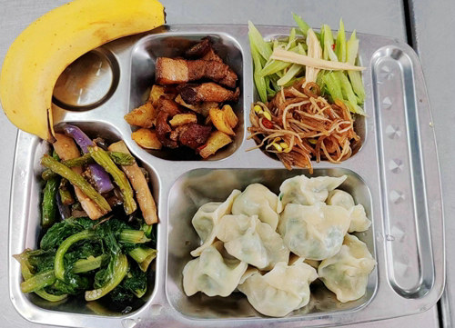 (西安訊)雞肉、魚肉、排骨……除過這些常見的主食陪著時令蔬菜外,搭配著新鮮牛奶,各式各樣時令瓜果的食堂引來了職工們的關注。