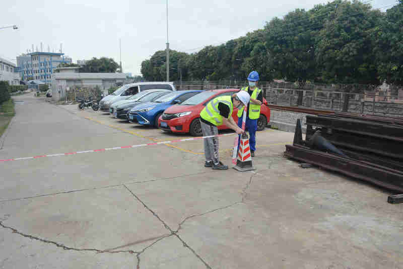 8時50分,作業(yè)隊到達(dá)西塱車輛段。雖然是早上,室外溫度已是35攝氏度,太陽早已映紅了車輛段,不遠(yuǎn)處的鋼軌在太陽的暴曬下變的“彎彎曲曲”,仿佛像一條游龍,熱浪充滿了每一個角落,讓人無處躲藏。