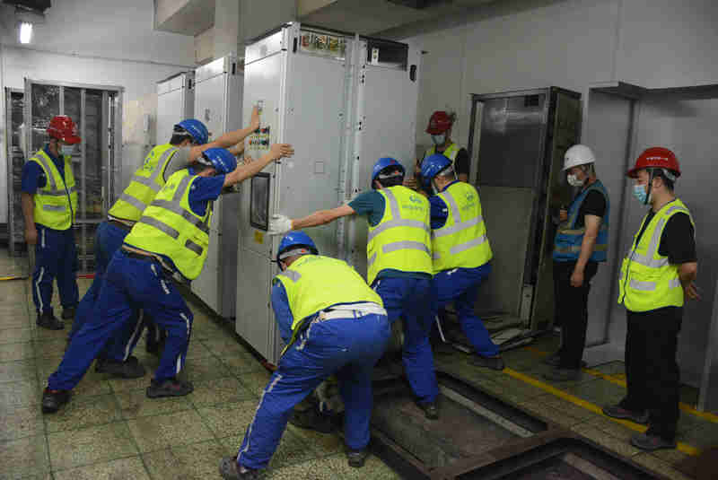 班組長李輝扯著大嗓門喊道:“把柜體外部的螺絲再緊一下,以免搬運(yùn)的時候掉落在軌行區(qū)……”“液壓叉車推行時慢一點,勻速用力,推的時候注意軌道平板車上的縫隙……”低壓柜最重達(dá)400公斤,高2米,稍有閃失就可能發(fā)生安全事故,每次設(shè)備機(jī)柜運(yùn)輸作業(yè),項目負(fù)責(zé)人王珂總要多次叮囑,確保每一道工序都安全推進(jìn)。