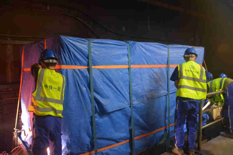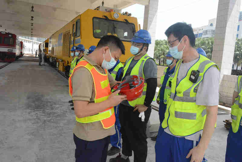 10時20分,在經(jīng)過防疫系列檢查、安全檢查、工器具清點、運(yùn)營簽發(fā)施工令后,作業(yè)人員迅速列隊成組,項目安質(zhì)部配合作業(yè)人員這邊拿起防護(hù)墩、拉起警戒線出清無關(guān)人員,那邊指揮貨車調(diào)整升降尾板至和軌道車車倉平齊。貨車司機(jī)打開貨車后門,現(xiàn)場防疫員根據(jù)業(yè)主防疫要求對柜體進(jìn)行消毒。大家各司其職,緊而有序,項目安質(zhì)部、監(jiān)理、業(yè)主單位全程督戰(zhàn),還按照管理要求安排專人對施工全程進(jìn)行了錄像。