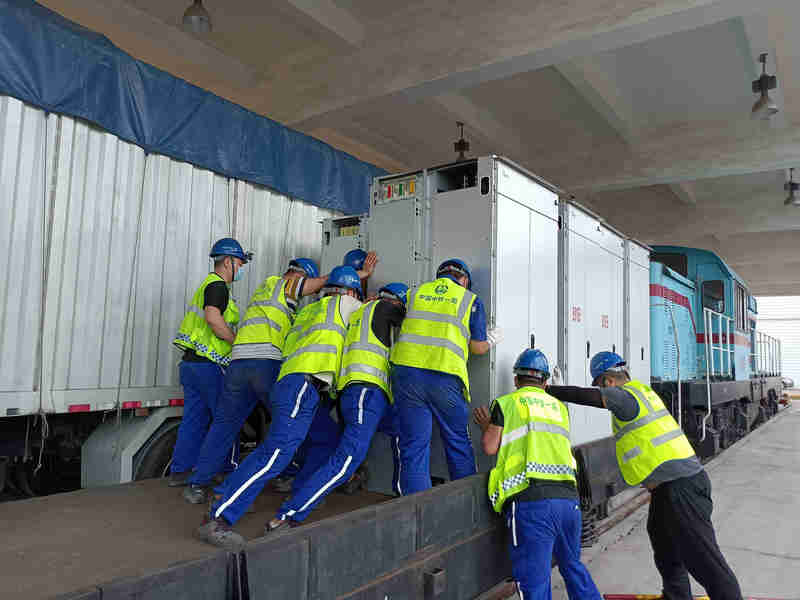 新設(shè)備柜從火車轉(zhuǎn)運(yùn)至軌道車上
