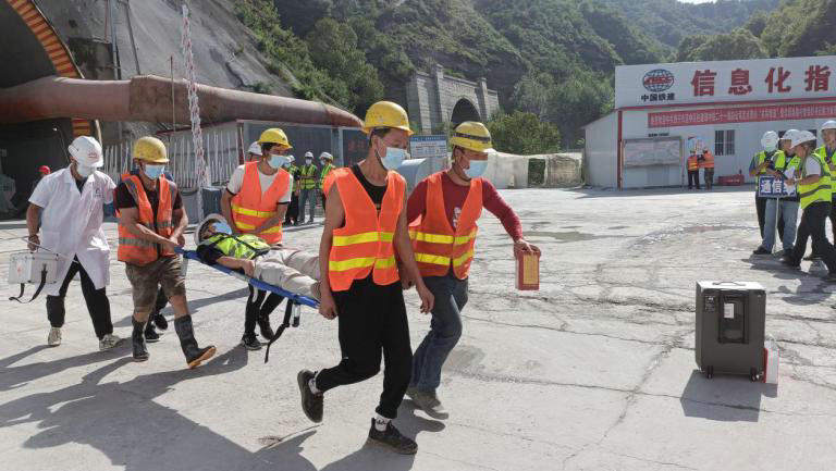 演練開始前,項(xiàng)目安全總監(jiān)演示并講解了滅火器的正確使用方法和如何正確佩戴防毒面罩。隨后,演練正式開始,演練模擬在新尚家溝隧道發(fā)生火災(zāi),一名施工人員被困,急需救援。項(xiàng)目部接到事故報(bào)告后,立即啟動(dòng)應(yīng)急預(yù)案,迅速展開救援,從火情發(fā)生到被困人員解救及火情控制過程,整場(chǎng)演練分工明確,救援工作高效、有序,達(dá)到了演練的目的。演練結(jié)束后,項(xiàng)目領(lǐng)導(dǎo)對(duì)本次演練提出了意見與建議,并強(qiáng)調(diào)現(xiàn)場(chǎng)要時(shí)刻保持警惕,確保安全施工。
