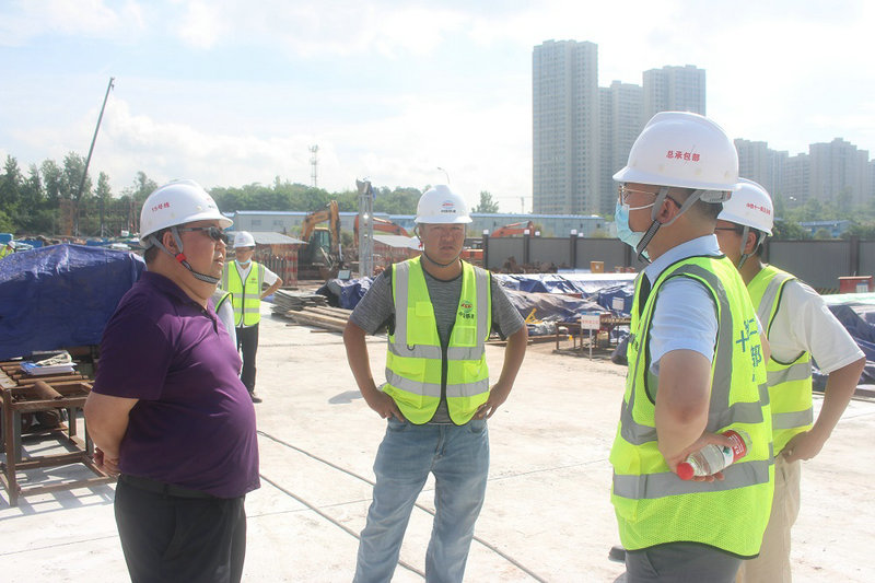 總承包部指揮長李兵(左1)在現(xiàn)場(chǎng)督查