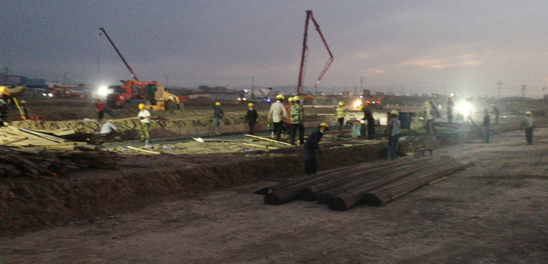 為確保施工進度,他們按照優(yōu)先接入、優(yōu)先放行、優(yōu)先編掛、優(yōu)先對位“四優(yōu)先”原則,優(yōu)化施工調(diào)度、勘察設(shè)計、施工排布、對接上級及兄弟單位等各作業(yè)環(huán)節(jié)緊密銜接,最大限度壓縮設(shè)備和人員非作業(yè)停留時間,加快人員和設(shè)備周轉(zhuǎn),全力保障建筑材料運輸供應(yīng)。另外,他們還根據(jù)現(xiàn)場情況不斷細化施工方案,設(shè)計、施工、優(yōu)化三管齊下,調(diào)動管理人員16人,工人114人,灑水車1臺,挖掘機3臺,裝載機1臺,渣土車3輛,平地機1臺,壓路機1臺,發(fā)電機3臺,鋼筋彎曲機1臺,鋼筋切斷機一臺有序推進工程建設(shè)。他們采取管理人員兩班倒、勞務(wù)工人三班倒、24小時不間斷作業(yè)等方式,鉚足勁晝夜奮戰(zhàn)在施工一線,爭分奪秒、搶抓進度,有力保障了疫情防控臨時防疫設(shè)施點的建設(shè)進度。截止目前,方倉集成房已進場60間,彩板房32間;鋼筋進場138.69t,混凝土進場221m³,現(xiàn)辦公桌椅,宿舍被褥、防疫物資等相關(guān)物品已到位,管理人員已具備辦公條件和住宿條件,現(xiàn)場鋼筋加工廠正在加工制作,基礎(chǔ)槽已具備綁鋼筋條件,已形成流水作業(yè)?;炷烈讶雸?,1號艙混凝土已澆筑完成。