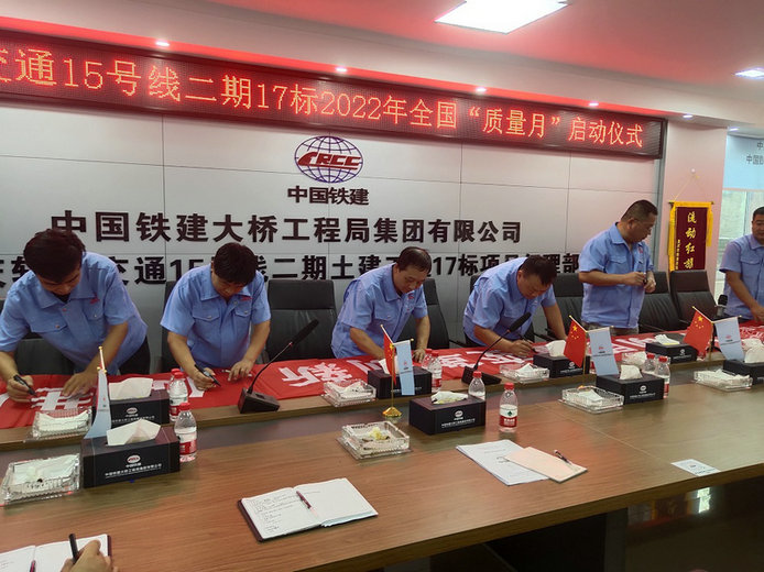 9月5日,中國鐵建重慶投資集團(tuán)軌道交通15號線二期總承包部17標(biāo)項(xiàng)目部正式啟動2022年全國“質(zhì)量月”活動,項(xiàng)目經(jīng)理顧賀云對“質(zhì)量月”活動進(jìn)行動員部署,作出了活動具體安排,公布了“質(zhì)量月”活動實(shí)施方案,全體員工在條幅上簽名承諾。