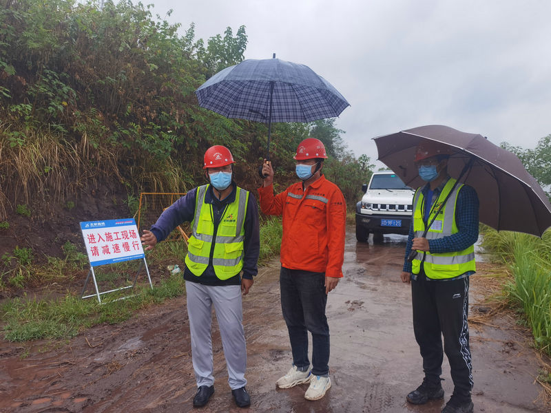 在K9+148涵洞施工現(xiàn)場(chǎng),防汛領(lǐng)導(dǎo)小組要求施工單位務(wù)必做到五個(gè)“落實(shí)”:一要落實(shí)好施工隊(duì)帶班巡查、防汛預(yù)案及各項(xiàng)應(yīng)急處置工作;二要落實(shí)好現(xiàn)場(chǎng)圍擋、防護(hù)用具等臨時(shí)設(shè)施的抗雨措施,必要時(shí)疏散工地現(xiàn)場(chǎng)人員,并設(shè)置警戒標(biāo)志;三要落實(shí)好施工作業(yè)面防坍塌措施,做好所轄標(biāo)段的防汛排水設(shè)施;四要落實(shí)好機(jī)械設(shè)備和外腳架的檢查加固工作;五要落實(shí)好場(chǎng)內(nèi)材料堆放防傾倒、墜落措施,做好高墜物的防護(hù)措施。8月下旬以來,項(xiàng)目部領(lǐng)導(dǎo)班子嚴(yán)格按照值班制度輪流帶班,對(duì)所轄標(biāo)段進(jìn)行防汛安全巡查,重點(diǎn)排查標(biāo)段內(nèi)重要施工點(diǎn)、橋涵工作面的安全隱患問題,查看搶險(xiǎn)隊(duì)備汛情況、日常安全檢查登記臺(tái)賬、防汛應(yīng)急物資儲(chǔ)備等,以確保安全度汛。