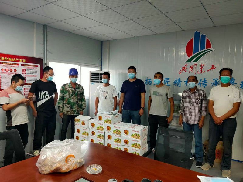 該項(xiàng)目位于昆玉市周邊,地處沙漠腹地,風(fēng)沙大,條件苦,自開工以來,工人們斗風(fēng)沙、戰(zhàn)酷暑,冒嚴(yán)寒,長期奮戰(zhàn)在施工一線,用勤勞的汗水換取了工程的質(zhì)量與進(jìn)度。中秋來臨,項(xiàng)目部“一班人”想工人所想,給工人所需,及時(shí)組織開展慰問活動(dòng),感謝工人們的辛勤付出。
