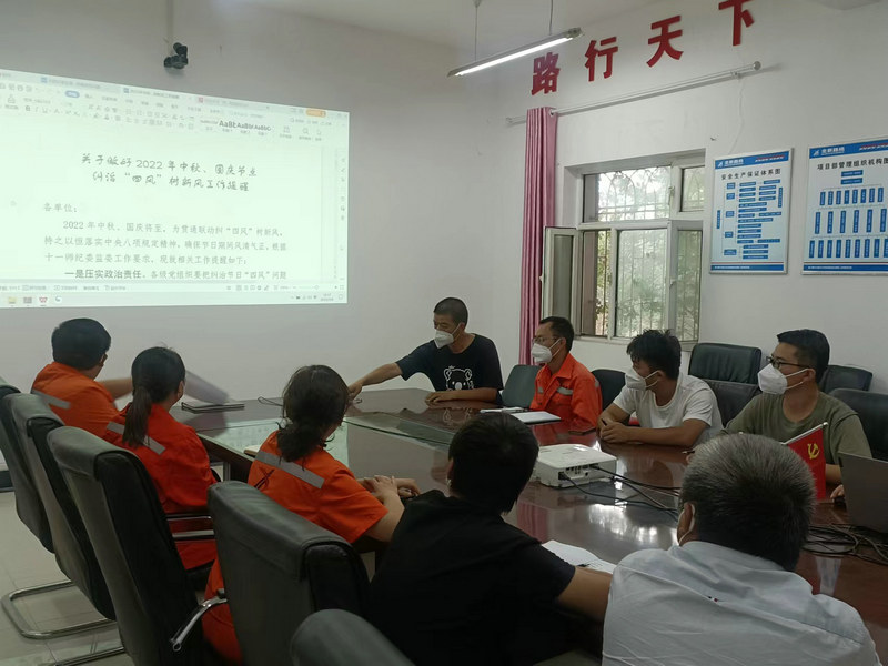 中秋、國(guó)慶雙節(jié)前夕,為進(jìn)一步嚴(yán)明廉潔紀(jì)律,營(yíng)造風(fēng)清氣正的節(jié)日氣氛, 順通路橋公司G312項(xiàng)目部開(kāi)展節(jié)前廉政早提醒,扎實(shí)開(kāi)展雙節(jié)節(jié)前系列廉政教育,筑牢黨員干部廉潔防線 ,并于2022年9月 6日組織全體員工學(xué)習(xí)上級(jí)下發(fā) 《關(guān)于做好2022年中秋國(guó)慶節(jié)點(diǎn)糾治“四風(fēng)”樹(shù)新風(fēng)工作提醒》;