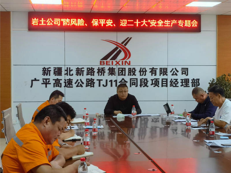 鐵路工程建設(shè)網(wǎng)訊(通訊員 劉宇奇 趙歡)9月8日下午,北新路橋集團(tuán)北新巖土公司召開“防風(fēng)險、保平安、迎二十大”安全生產(chǎn)專題會議,對迎接黨的二十大,強(qiáng)化安全生產(chǎn)工作具體任務(wù)進(jìn)行部署。會議由公司副總經(jīng)理周衛(wèi)斌同志主持,黨委副書記、總經(jīng)理郝建平同志做工作部署,黨委書記、董事長田秋林同志做重要指示。