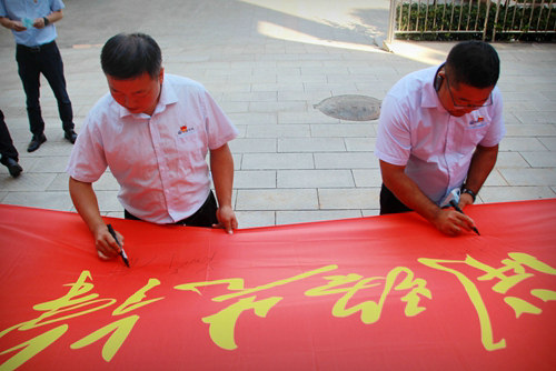 活動結(jié)束后,黨總支組織參觀人員一并在“傳承筑路精神 為黨爭光有我”主題橫幅以及“開路先鋒”旗幟上進(jìn)行了簽字承諾。(李梅)
