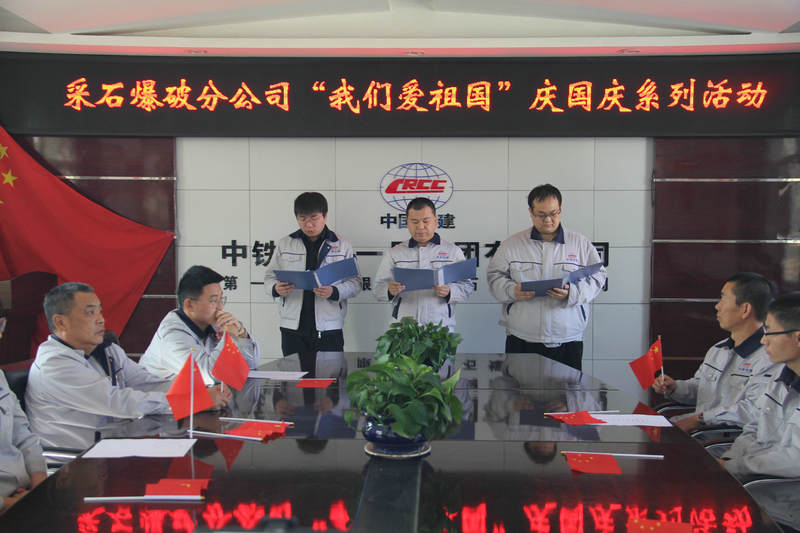 為慶祝中華人民共和國(guó)成立73周年,喜迎黨的二十大,10月2日,中鐵二十一局一公司采石爆破分公司開(kāi)展“我們愛(ài)祖國(guó)”國(guó)慶節(jié)慶?;顒?dòng),通過(guò)“頌祖國(guó)”、“唱祖國(guó)”、室外健身運(yùn)動(dòng)等線(xiàn)上線(xiàn)下相結(jié)合方式,向祖國(guó)獻(xiàn)上生日祝福。