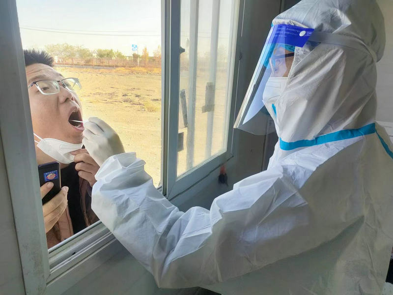若有戰(zhàn),召必回,戰(zhàn)必勝!十二師疆門市場是十二師轄區(qū)貨物流通的重要樞紐,是十二師轄區(qū)的第一道大門,更是疫情防控最重要的第一道安全線。于志龍、譚超是天恒基集團供水設(shè)施搶修排隊員,主動請纓參加疆門市場疫情防控志愿服務(wù),根據(jù)整體安排,他們具體負責外來進烏車輛人員核酸檢測工作,面對隨時都有可能與病毒零距離接觸的情況下,他們始終以天恒基水務(wù)人飽滿的工作熱情和精氣神,認真負責的做好每一次核酸檢測等工作,充分彰顯了當代兵團民兵在防疫非常時期應有的風采和作為。