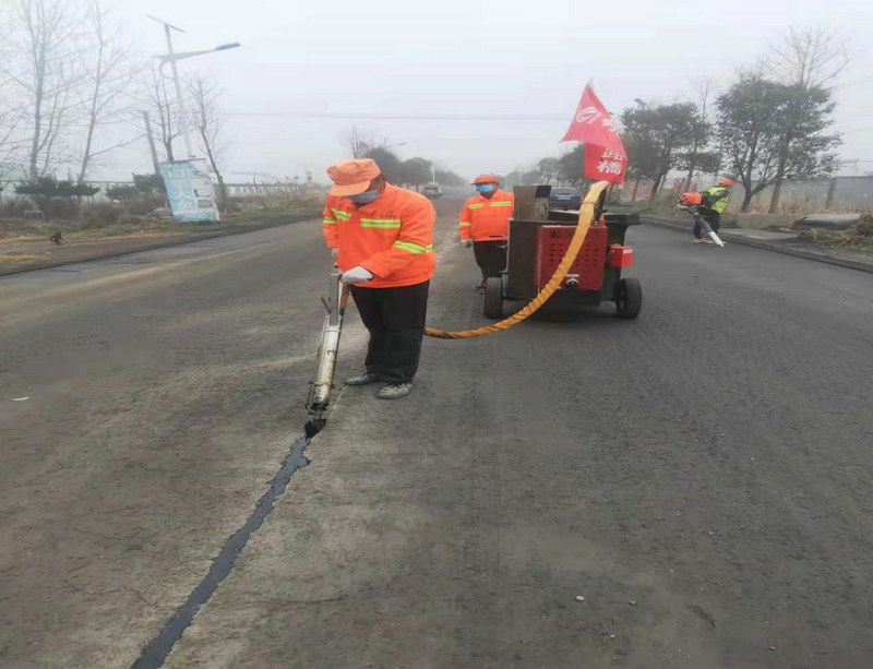 與傳統(tǒng)熱瀝青材料相比,密封膠灌縫施工的優(yōu)點(diǎn)在于,用開(kāi)槽機(jī)開(kāi)槽擴(kuò)縫后,再利用灌縫機(jī)將密封膠均勻、飽滿的注入裂縫內(nèi),使裂縫完全被密封膠封堵密實(shí),密封膠以其良好的防水性、粘結(jié)性和溫度穩(wěn)定性,能夠有效防止裂縫再次開(kāi)裂,從而把路面病害消除在萌芽狀態(tài)、做到預(yù)防性養(yǎng)護(hù)。