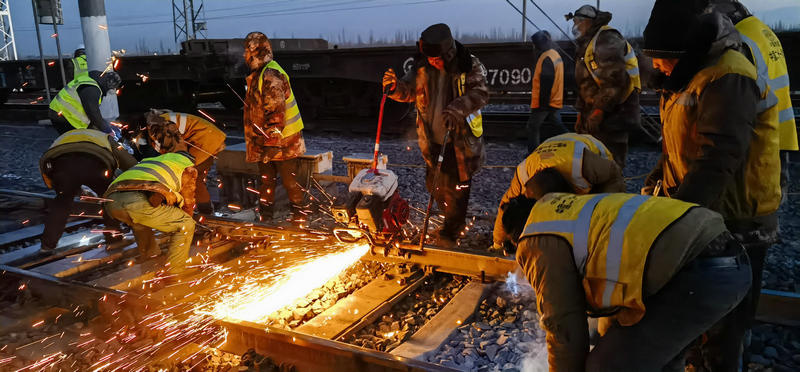 12月27日,400余名工人冒著零下17度的嚴(yán)寒經(jīng)過(guò)連續(xù)8.5小時(shí)的鐵路二級(jí)封鎖施工,成功拆除既有道岔6組,線路59.43米,插入道岔5組,補(bǔ)充軌排46.16米,同步哈密東Ⅱ場(chǎng)(駝峰尾部)、Ⅲ場(chǎng)(上行出發(fā)場(chǎng))新增信號(hào)設(shè)備安裝調(diào)試,室內(nèi)外配線拆改,新聯(lián)鎖、CTC軟件更換及聯(lián)鎖試驗(yàn),軋道試驗(yàn)、改方、場(chǎng)聯(lián)試驗(yàn);調(diào)度所局中心服務(wù)器數(shù)據(jù)修改,完成哈密東Ⅲ場(chǎng)接觸網(wǎng)接觸懸掛撥移、過(guò)渡、調(diào)整,哈密東Ⅱ、Ⅲ場(chǎng)聯(lián)絡(luò)線Ⅱ-2#與Ⅱ-3#支柱間接觸網(wǎng)線索對(duì)接、分段絕緣器安裝及調(diào)試,隔開(kāi)引線安裝及調(diào)整,接觸網(wǎng)熱滑試驗(yàn)。標(biāo)志著由中鐵二十一局集團(tuán)承擔(dān)施工的哈密東站擴(kuò)能改造工程順利完成。