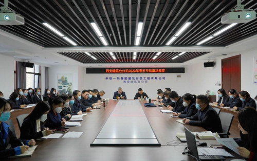 (西安訊)“嚴(yán)明紀(jì)律要求、開(kāi)展作風(fēng)檢查、加強(qiáng)家風(fēng)建設(shè)……”為加強(qiáng)春節(jié)期間紀(jì)律作風(fēng)建設(shè),營(yíng)造風(fēng)清氣正的節(jié)日氛圍,1月8日早,中鐵一局建安公司西安建筑分公司黨總支組織分公司機(jī)關(guān)全體職工在會(huì)議室開(kāi)展了春節(jié)前專題廉潔教育,會(huì)議由分公司黨總支書記劉改民主持,分公司經(jīng)理白濤及其他班子成員、機(jī)關(guān)管理人員共計(jì)40余人參加了會(huì)議。