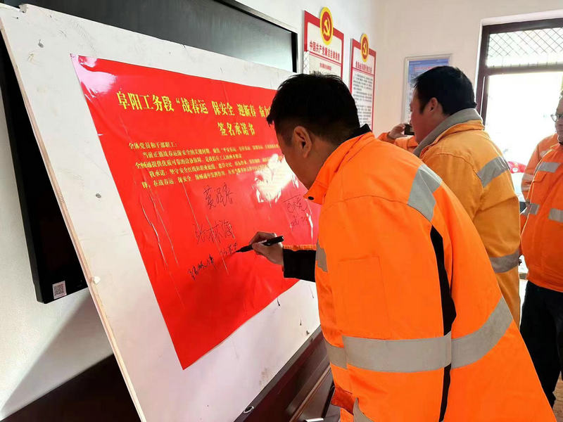 當(dāng)前正值戰(zhàn)春運(yùn)、保安全的關(guān)鍵時(shí)期,為確保春運(yùn)安全暢通提供優(yōu)質(zhì)可靠的設(shè)備保障,阜陽工務(wù)段聚焦“平安春運(yùn)、有序春運(yùn)、溫馨春運(yùn)、讓旅客體驗(yàn)更美好”總體要求,在全段黨員中舉行“戰(zhàn)春運(yùn)、保安全、迎新春、奮力實(shí)現(xiàn)開門紅”簽名承諾活動(dòng)。亳州線路車間黨支部積極響應(yīng),認(rèn)真組織落實(shí)段有關(guān)要求,號(hào)召黨支部全體黨員立即行動(dòng)起來,亮明身份,爭(zhēng)當(dāng)先鋒,在保春運(yùn)、保安全、保暢通中發(fā)揮出黨員的模范帶頭作用,扎根一線,奮勇拼搏,確保春運(yùn)期間京九線列車運(yùn)行安全暢通。