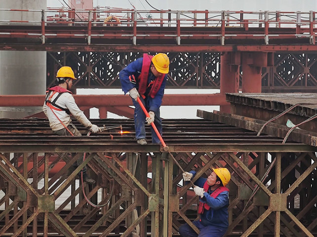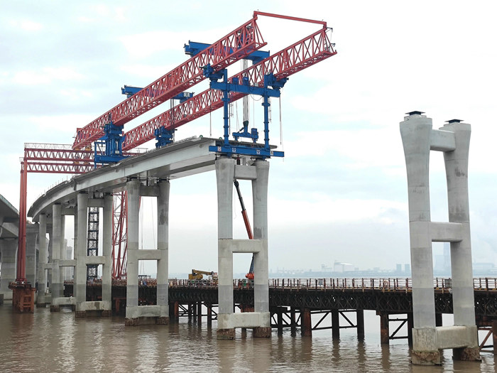 元宵節(jié)前后這段時間,杭州灣地區(qū)與往年相比,雨水激增,杭甬復(fù)線互通位于鎮(zhèn)海區(qū)海域,連綿不絕的雨水給運梁、架梁、拆除棧橋和橋面混凝土施工帶來一定困難。雨水天一個突出特點是,氣溫低、濕滑,有雨必有風(fēng),可謂風(fēng)雨交加。灰蒙蒙的氣流籠罩著氣勢恢宏的濱?;ネǎ瑒邮幉话驳暮K桨l(fā)不安分。置身于棧橋上、高空橋梁上的員工們經(jīng)受著雨水的“沐浴”,冷得渾身發(fā)抖,可是不到下班時間不能隨便離開。穿上雨衣干活,顯得笨手笨腳,而雨衣常常在施工過程中不小心被釘子、鋼筋劃破,哪個員工的雨衣都有幾個口子,雨水會順著不起眼的裂口流進里面的衣服上。這還不算啥,濕漉漉的天氣潛伏著安全隱患才值得警惕。由于腳下的地面都是水,容易滑倒摔傷。但不能因為下雨而停工,除非遇到大雨或暴雨、7級以上大風(fēng),才撤離現(xiàn)場。一般小雨和6級以下風(fēng)力,都要照常施工。季節(jié)性的變化是自然規(guī)律,誰也阻止不了雨水的降臨。為了員工的安全,項目部按照雨天安全管理辦法,由現(xiàn)場負(fù)責(zé)人、安全總監(jiān)、專職安全員每天在工地巡檢,在排除安全隱患的同時,最有效的辦法便是大聲提醒作業(yè)員工,上班要穿防滑鞋,走路要小心,臨水和高空作業(yè)要系好保險繩,不能嫌麻煩、圖省事,要在保證個人的生命安全的前提下進行施工。濱海互通是今年上半年攻堅的重中之重,計劃生產(chǎn)鋼箱梁232片、疊合梁90片,現(xiàn)澆橋面板41聯(lián),安裝防撞欄14472米,完成鋼箱梁架設(shè)142片、疊合梁90片。任務(wù)都分解到各施工隊,規(guī)定了完成任務(wù)的節(jié)點,從項目部到施工隊員工,以不畏難、不怕苦、勇?lián)?dāng)、只爭朝夕的拼搏精神投入到工作中。兩個棧橋隊以每天拆除30多平米棧橋的速度向前推進。舟山梁場晝夜不停地生產(chǎn)加工鋼箱梁、疊合梁。橋面施工隊組織機械和人力緊鑼密鼓地鋪設(shè)鋼筋網(wǎng)、澆筑混凝土。卸梁站、提梁站以及運梁車和兩臺架橋機的操控人員,在現(xiàn)場管理人員指導(dǎo)下緊張有序地進行作業(yè)。
