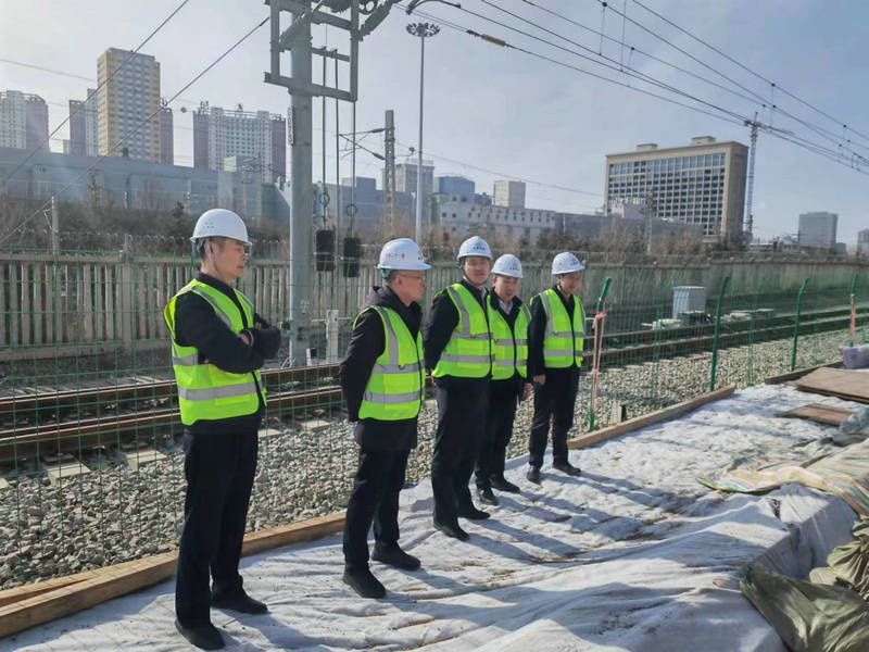 中鐵二十一局四公司黨委書記、執(zhí)行董事劉忠厚一行到蘭新客專達速提質(zhì)項目調(diào)研(李建華 攝)