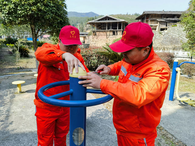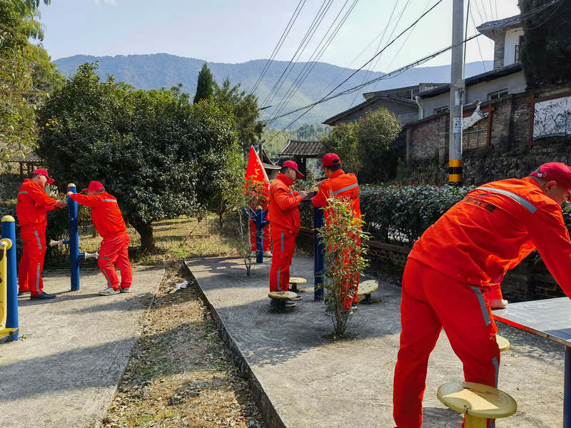 3月1日下午,和煦的陽光照耀著綠水青山,青年志愿者們在項(xiàng)目部駐地院內(nèi)集合整隊(duì),他們即將出發(fā)去幫村民維修整理健身器械,也是全村唯一一處為村民提供休閑健身的地方。