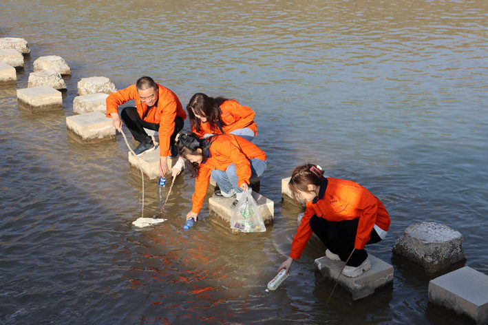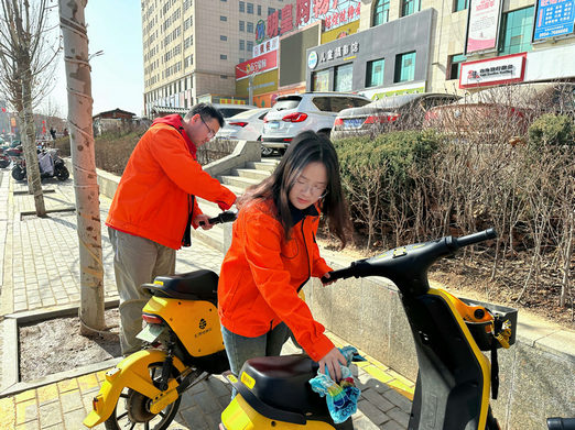 項(xiàng)目志愿者們自行配備了掃把、水盆、抹布、鐵鏟、夾鉗、竹竿、垃圾袋等工具,分別前往茹河周邊區(qū)域、繁華區(qū)的共享單車(chē)固定停放點(diǎn)、雷河灘公園開(kāi)展清掃環(huán)境衛(wèi)生活動(dòng)。大家分工協(xié)作,一小隊(duì)手持掃把、夾鉗、鐵鏟撿拾草叢及道路垃圾、打撈河道和濕地白色污染物,另一小隊(duì)端著盆、拿著消毒酒精和衛(wèi)生工具,擦洗共享單車(chē)、兒童樂(lè)園設(shè)施、各種櫥窗、歇息桌椅板凳、垃圾桶等。他們不怕臟、不怕累,干得不亦樂(lè)乎,通過(guò)一個(gè)下午的勞動(dòng),周邊環(huán)境煥然一新。