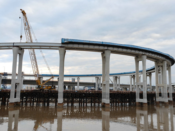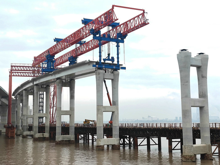 從3月16日起開始架設(shè)4座拼寬橋29片梁,在不受臺風(fēng)等惡劣天氣影響下,預(yù)計6月底完成濱?;ネㄈ考芰喝蝿?wù)。