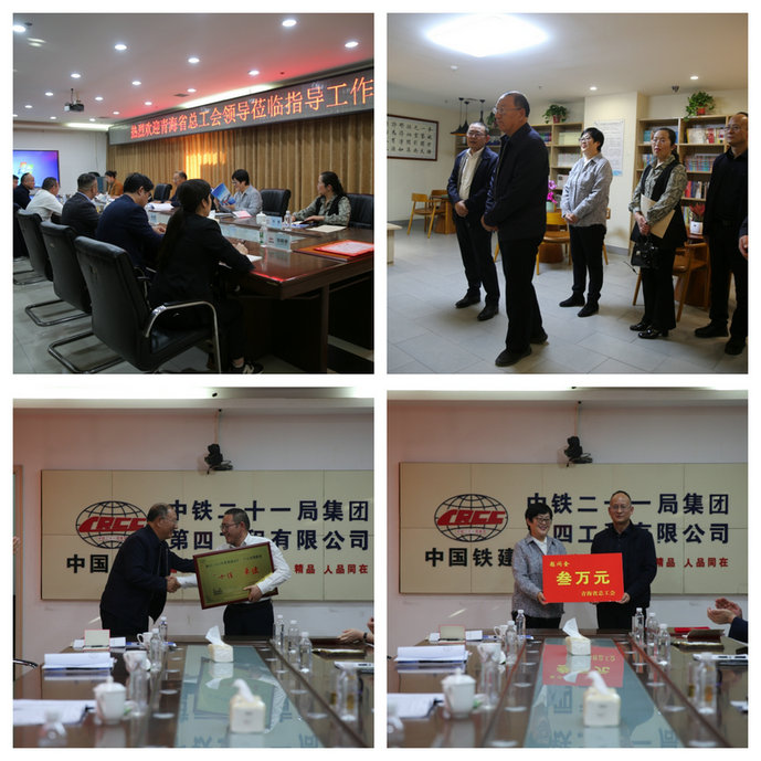 馬吉孝一行參觀了中鐵二十一局四公司職工書屋、觀看了宣傳片,舉行了“2020—2021年度青海省職工職業(yè)道德建設(shè)‘十佳’單位”榮譽(yù)授牌儀式,聽取公司相關(guān)情況匯報(bào)并發(fā)放慰問金。