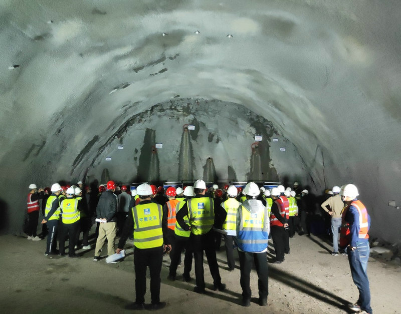 隨后觀摩團(tuán)進(jìn)入隧道洞內(nèi)施工現(xiàn)場(chǎng)進(jìn)行實(shí)地查看,參觀隧道施工工藝、工裝配置、實(shí)用技術(shù)應(yīng)用、過程安全、質(zhì)量、進(jìn)度控制、現(xiàn)場(chǎng)標(biāo)準(zhǔn)化施工等隧道工程的工藝、工法、工具,聽取了現(xiàn)場(chǎng)負(fù)責(zé)人的詳細(xì)介紹。