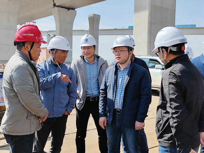 上午9點,王迎春來到濱?;ネ?,聽取了項目部常務(wù)副經(jīng)理喬繼保關(guān)于濱?;ネㄒ?guī)模、概況和開工以來完成棧橋、樁基、橋墩、架梁等多個節(jié)點目標(biāo)等情況,并就目前施工進展和下一步架梁上跨金塘大橋的節(jié)點作了介紹。王迎春查看了履帶吊、架橋機正在架梁作業(yè)的場面,以及卸梁站緊張有序地分步驟卸梁、運梁的情景。隨后登上D匝道20多米高的橋面,認(rèn)真查看了盡收眼底的互通全貌,并沿著數(shù)百米長的橋面從東到西,對橋面鋼筋網(wǎng)的鋪設(shè)、混凝土的澆筑、防護欄等逐一檢查,并向業(yè)主、監(jiān)理、項目部人員詢問施工過程的一些細節(jié)。他說:“從這條匝道可以看出整個互通的施工質(zhì)量,十五局是一支技術(shù)力量雄厚的隊伍。”根據(jù)目前的施工推進情況,他提出四點要求:一是戒驕戒躁、再接再厲,越是后期越要嚴(yán)把質(zhì)量關(guān),打造省部級以上優(yōu)質(zhì)工程是業(yè)主和十五局共同的心愿,要打好攻堅戰(zhàn)。二是下一步跨金堂大橋架梁,安全風(fēng)險高,措施要先行,每個環(huán)節(jié)考慮要縝密,從思想上要高度重視,想在前,排除各種隱患,才能保證施工安全,萬萬不可粗心大意和存有僥幸心理。三是把勞動競賽活動搞得轟轟烈烈、有聲有色,這樣對調(diào)動各方面積極性、推進各工序施工會起到促進作用。四是要把現(xiàn)有人力、財力、物力等各種資源優(yōu)化到最佳,圍繞工期目標(biāo)強化管理,責(zé)任到人,才能實現(xiàn)總體目標(biāo)。