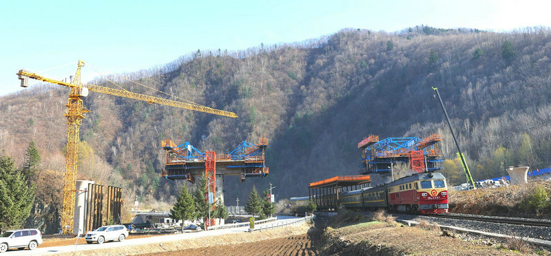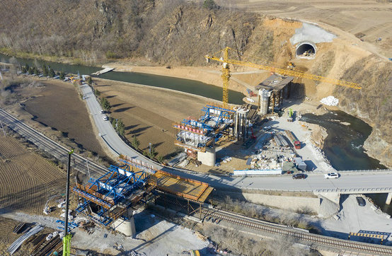 4月28日 13時(shí)20分,隨著沈白高鐵吉林段TJ-6標(biāo)湯河1號(hào)、2號(hào)大橋,長(zhǎng)34米、寬7.5米、高6.5米的跨線鋼構(gòu)防護(hù)棚施工告捷,歷時(shí)21天的跨渾白鐵路營(yíng)業(yè)線封鎖施工順利結(jié)束。為橋梁跨線部分掛籃施工開辟了綠色通道,筑起了確保施工期間鐵路運(yùn)輸安全屏障。