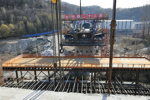 據(jù)了解,為了確保沈白高鐵吉林段TJ-6標(biāo)湯河1號(hào)、2號(hào)大橋施工的順利進(jìn)行,4月6日至28日,中鐵二十三局集團(tuán)沈白高鐵項(xiàng)目部三分部,分別在跨越既有渾白鐵路永紅站至仙人橋站間HBK89+080及HBK94+440處,新建兩座鋼構(gòu)防護(hù)棚,每天分別進(jìn)行了3至3.5個(gè)小時(shí)不等的基礎(chǔ)混凝土澆筑、棚架管柱及棚頂鋼板安裝鋪設(shè)等封鎖施工作業(yè)。