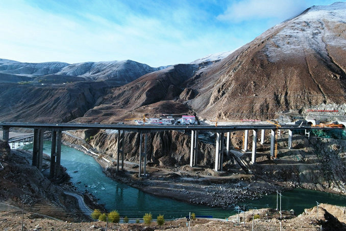 目前卡如雅魯藏布江大橋正在拆除架橋機(jī),全力推進(jìn)橫隔板、濕接縫、護(hù)欄等后續(xù)施工。
