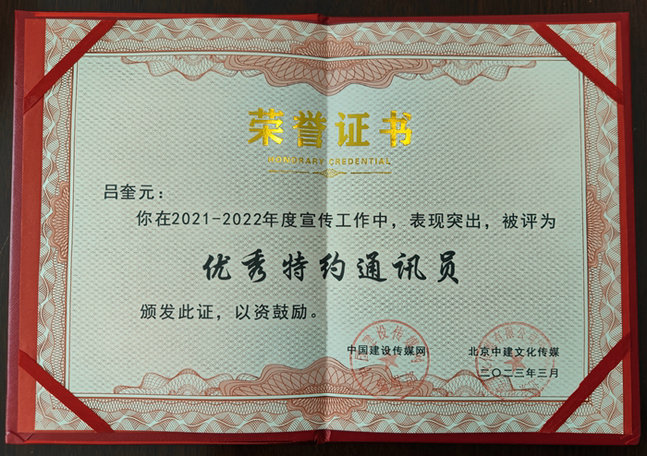 在表彰會上,中鐵十五局杭甬項目部等6家單位被評為先進集體、呂奎元、何旭等11人獲優(yōu)秀特約通訊員稱號、2個單位獲首屆優(yōu)秀傳播組織獎、5人獲首屆優(yōu)秀傳播人物獎。