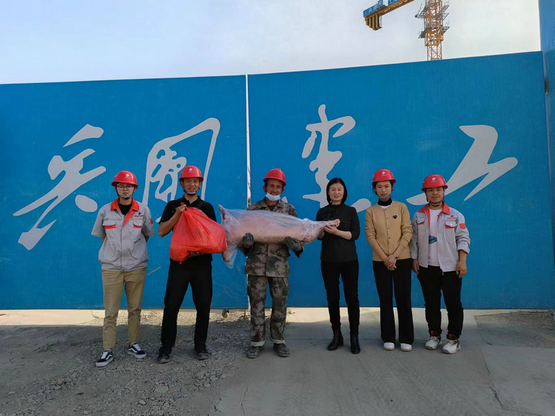 烏魯木齊訊(陳君)2023年五一國際勞動節(jié)當(dāng)日,由兵團(tuán)五建工會主席帶隊(duì)的慰問小組,來到東方茂項(xiàng)目施工現(xiàn)場,為五一期間仍堅(jiān)守在施工一線的員工送去了羊肉、豬肉等慰問品和滿滿的節(jié)日祝福。