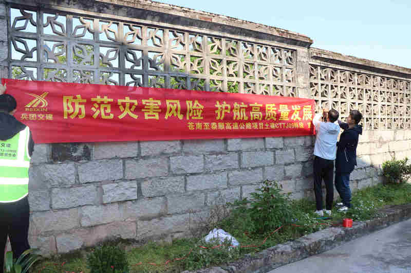 “我們地處浙江南部,受季風影響強烈,洪澇、臺風、雷電、強降雨、洪澇、滑坡、泥石流等災害均可能發(fā)生,且發(fā)生的頻率比較高……我們應當知曉身邊自然災害并掌握避險技能,保證自身和身邊人的安全。”宣傳周首日,項目安環(huán)部緊緊圍繞宣傳周主題召開動員部署會,組織全體職工進行宣誓和簽名,并在項目駐地周邊懸掛宣傳橫幅,張貼宣傳海報、發(fā)放宣傳單等,將防災減災知識傳達給每個從業(yè)人員,切實保障活動注重效果、不走過場,確保工作取得實效。