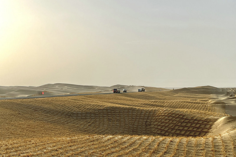 38團訊(通訊員 崔振杰)5月15日,北新路橋集團國際工程事業(yè)部第二師38團至塔中沙漠公路項目上自卸車來回奔忙。該項目目前在沙漠中設有兩處營地點,無信號、無水電,一切補給靠外部營地點運輸,但就是在這樣越來越惡劣的變化中項目一點一滴推進成型。如蒼龍潛地,飛沙走石中、艷陽高照時、萬里晴空下,自卸車往來奔忙、施工員駐足指揮、草方格徐徐鋪展,靜止與運動的平衡中“沙漠黃龍”直搗天際。