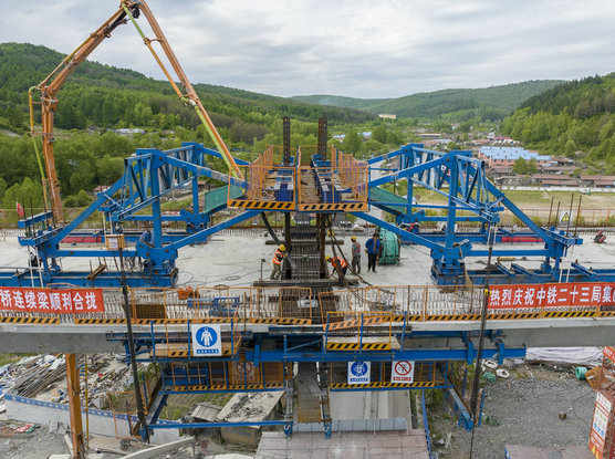 據(jù)悉,該標(biāo)段承建的8座橋梁中,有懸臂澆筑連續(xù)梁4座。首跨合龍的連續(xù)梁為地處白山市江源區(qū)灣溝鎮(zhèn)的跨201國道大橋,該橋全長462.31米,分別連接赤松隧道和長青隧道。連續(xù)梁合龍后,消除了201國道行車安全隱患,為加快后續(xù)無砟軌道板施工創(chuàng)造了先行條件。