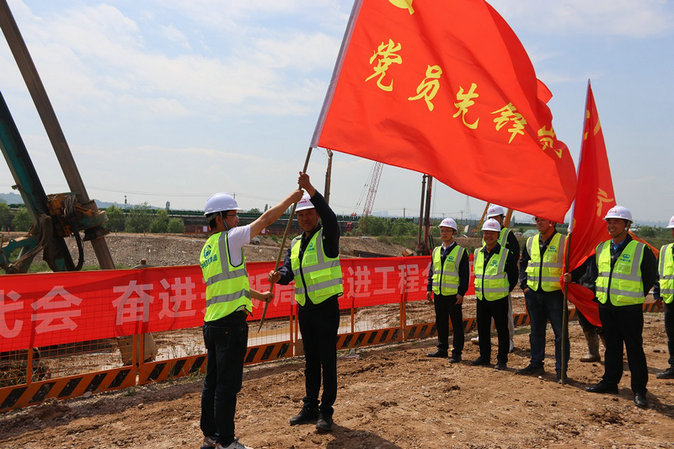 授旗儀式設(shè)在富平縣梅家坪鎮(zhèn)石川河施工現(xiàn)場,分別與黨員、團(tuán)員、協(xié)作隊(duì)伍20余人舉行了“黨員先鋒崗”、“工人先鋒號”、“青年突擊隊(duì)”授旗儀式,倡議將勞動(dòng)技能競賽貫穿“公司第一次黨代會(huì)精神”全過程,將“比組織領(lǐng)導(dǎo)、比工程質(zhì)量、比安全生產(chǎn)、比建設(shè)進(jìn)度、比技術(shù)創(chuàng)新、比科學(xué)管理、比文明施工、創(chuàng)和諧團(tuán)隊(duì)” 為主要內(nèi)容的“七比一創(chuàng)”、以“保安全、保質(zhì)量、保工期、促發(fā)展 ” 為內(nèi)容的“三保一促”、以“ 產(chǎn)品創(chuàng)精、效益創(chuàng)高、管理創(chuàng)先、人才創(chuàng)強(qiáng)、服務(wù)創(chuàng)優(yōu) ”為主要內(nèi)容的 “五創(chuàng)”等勞動(dòng)和技能競賽,有效助推國家重點(diǎn)項(xiàng)目優(yōu)質(zhì)安全如期建成,全速推進(jìn)西延“紅色高鐵”奮斗目標(biāo),全員唱響“中鐵四局黨旗紅、建功西延當(dāng)先鋒”。搶抓施工黃金季節(jié),積極發(fā)揮黨組織的戰(zhàn)斗堡壘作用和黨員先鋒崗、工人先鋒號、青年突擊隊(duì)在急難險(xiǎn)重任務(wù)中的生力軍作用,彰顯時(shí)代新作為。