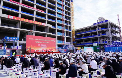 當(dāng)天,榆林市2023年全市建設(shè)工程質(zhì)量安全標(biāo)準(zhǔn)化暨文明工地現(xiàn)場(chǎng)觀摩會(huì)在榆林市公安局業(yè)務(wù)技術(shù)用房及大數(shù)據(jù)應(yīng)用中心項(xiàng)目部舉辦,榆林市住建局、應(yīng)急局、生態(tài)環(huán)保局、公安局、榆林高新技術(shù)產(chǎn)業(yè)開發(fā)區(qū)管理委員會(huì)應(yīng)急管理局主要領(lǐng)導(dǎo)、各縣市區(qū)住建局分管負(fù)責(zé)人、質(zhì)量安全監(jiān)督機(jī)構(gòu)負(fù)責(zé)人、中心城區(qū)各在建項(xiàng)目項(xiàng)目負(fù)責(zé)人等500余人組成的觀摩團(tuán)深入?yún)⑦x工地進(jìn)行觀摩交流。