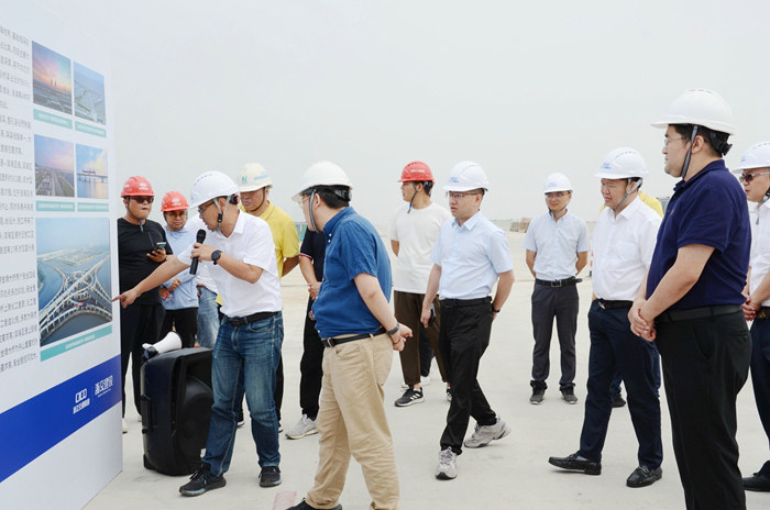 寧波市交通運(yùn)輸局副局長樊獻(xiàn)鵬,寧波市交通工程管理中心主任王迎春、副主任葉云斌,浙江交投交通建設(shè)管理有限公司副總經(jīng)理楊成安,監(jiān)理公司總監(jiān)章華鋒,以及各項目經(jīng)理、總工陪同。