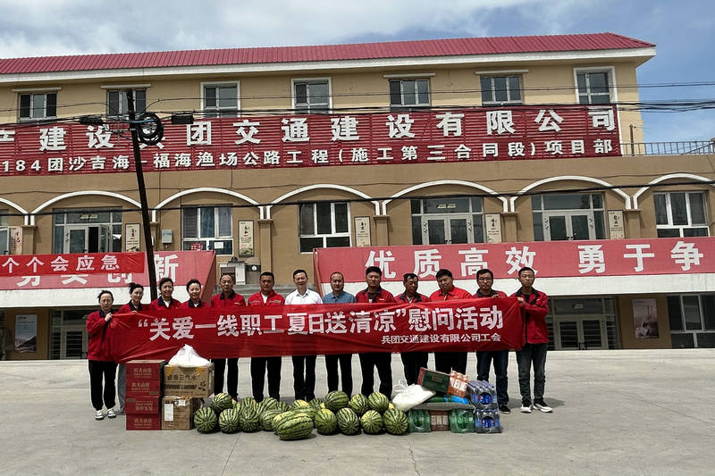 福海訊(通訊員 馬冬玲)激情飛揚(yáng)紅六月,致敬最美勞動者。為傳遞公司黨委以及工會對一線職工的關(guān)心關(guān)愛,6月14日上午,兵團(tuán)交建黨委副書記、紀(jì)委書記、工會主席李軍赴國道576第十師184團(tuán)沙吉海-福海漁場公路工程項目開展“關(guān)愛一線職工 夏日送清涼”慰問活動。
