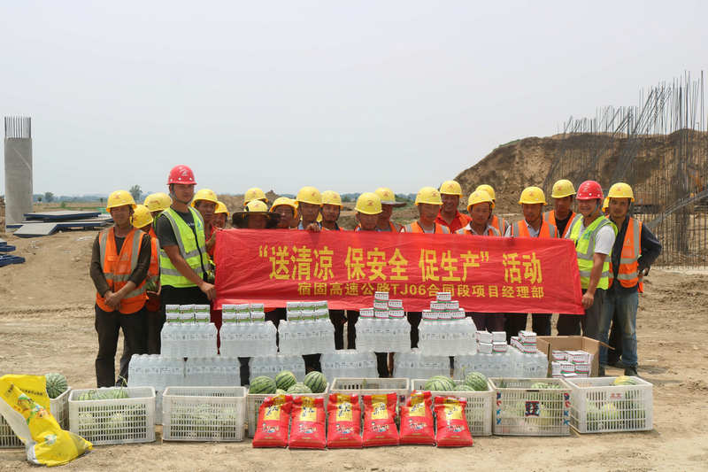 蚌埠訊(通訊員:孫鵬、李天懿)驕陽似火,酷暑難擋,安徽蚌埠地區(qū)持續(xù)高溫天氣給一線建設(shè)者帶來嚴(yán)峻的“烤”驗。為保障奮戰(zhàn)在一線建筑工人的健康安全,確保施工進度順利推進,近日,北新路橋集團長沙分公司安徽宿固6標(biāo)項目根據(jù)分公司工會安排部署,組織開展了“送清涼 保安全 促生產(chǎn)”慰問活動。