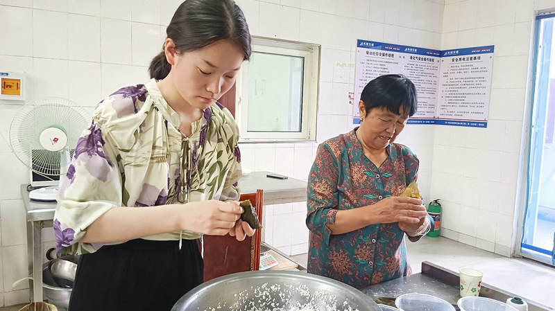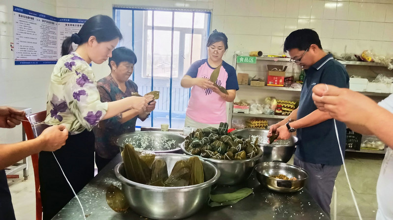 隨后, 有“包粽能手”對(duì)每個(gè)步驟進(jìn)行現(xiàn)場(chǎng)講解——捋粽葉、做漏斗、填糯米、壓緊實(shí)、封口、扎捆,根據(jù)講解分工協(xié)作,一片片粽葉在他們的手中上下翻飛、彎曲折疊,不一會(huì)兒功夫,一只漂亮粽子瞬間成型。“我們包的不僅僅是粽子,還把快樂(lè)、幸福、安康一同包進(jìn)這香香糯糯的粽子里。”參與包粽子的干部職工紛紛表現(xiàn)出了對(duì)傳統(tǒng)文化的理解認(rèn)識(shí)和對(duì)當(dāng)下幸福生活的喜悅。