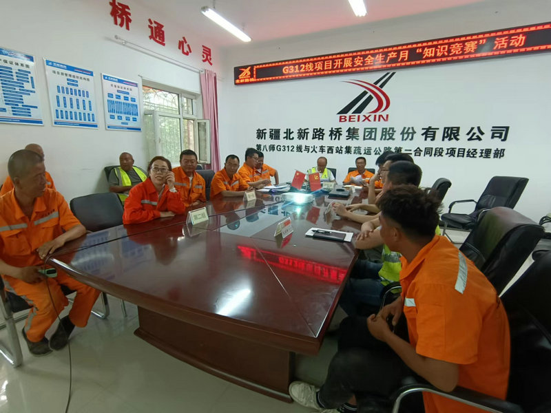 石河子訊(尹紅梅)為進(jìn)一步增強(qiáng)職工群眾的安全意識(shí),提高安全生產(chǎn)技能,增強(qiáng)預(yù)防和應(yīng)急處理能力,營(yíng)造“人人講安全、個(gè)個(gè)會(huì)應(yīng)急”的濃厚氛圍,按照“安全生產(chǎn)月”活動(dòng)要求,6月20日下午,新疆北新順通路橋公司G312項(xiàng)目部開(kāi)展安全生產(chǎn)月知識(shí)競(jìng)賽活動(dòng),