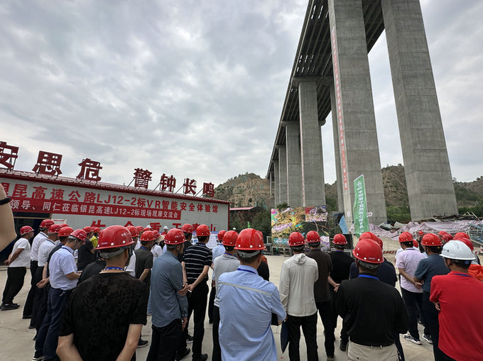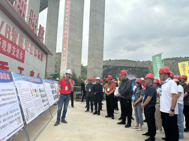 在觀摩現(xiàn)場(chǎng),項(xiàng)目總工程師為大家介紹了公司簡(jiǎn)介、項(xiàng)目工程概況,觀摩團(tuán)了解了任灣茹河特大橋牛腿支架的創(chuàng)新過程、高墩養(yǎng)生自動(dòng)噴淋系統(tǒng)、液壓爬模系統(tǒng)、大體積溫控承臺(tái)等一系列新技術(shù)微創(chuàng)新,紛紛贊揚(yáng)了項(xiàng)目部積極響應(yīng)中鐵建寧夏高速公路有限公司“微改革、微創(chuàng)新”活動(dòng),推動(dòng)“微創(chuàng)新”技術(shù)、工法、設(shè)備、工藝的實(shí)踐運(yùn)用。隨后,大家移步到技術(shù)賦能視頻區(qū),仔細(xì)且直觀地通過動(dòng)畫的形式了解了任灣茹河特大橋從地基到橋墩再到橋面的建造思路和模型,大家紛紛感嘆其結(jié)構(gòu)之精巧,創(chuàng)新之實(shí)用,并對(duì)其給出了高度贊揚(yáng)。